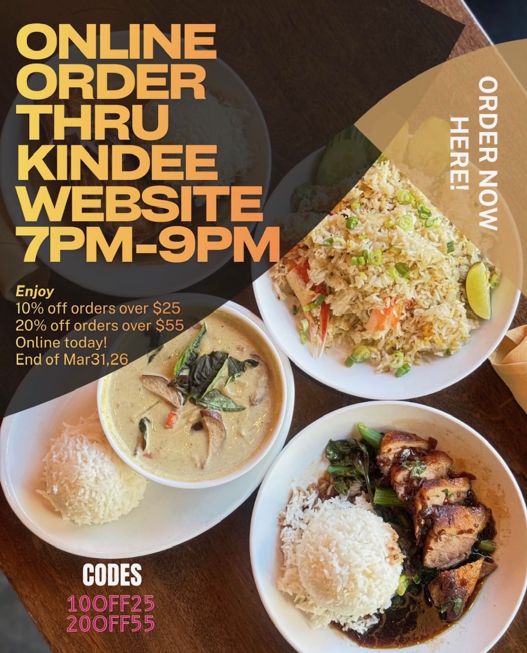 Kindee offers traditional Thai cuisine with a modern flair. Our menu offers a large variety of unique appetizers, delicious entrées, hot soups and crisp salads. Whatever your preference, we are sure you will find something on our menu that will satisfy your appetite.